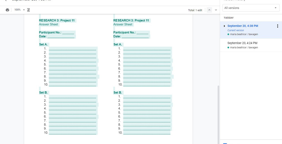Preparation of Answer SheetsEdryll CorpuzOct 11, 20221 min readProof of the making of the answer sheet in google docs to let other members to verify the work.