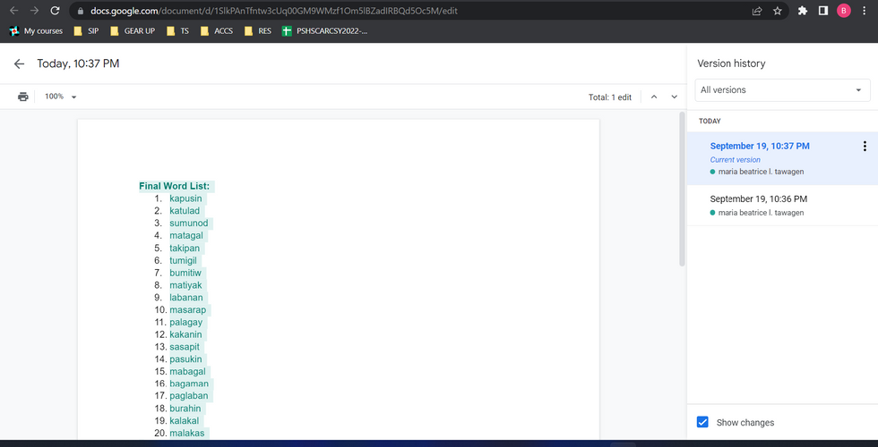 Preparation of Word ListEdryll CorpuzOct 11, 20221 min read1st - 2nd picture: choosing Tagalog words from a chosen textbook from RRL.3rd picture: Comments from groupmates were considered before finalizing the word list.